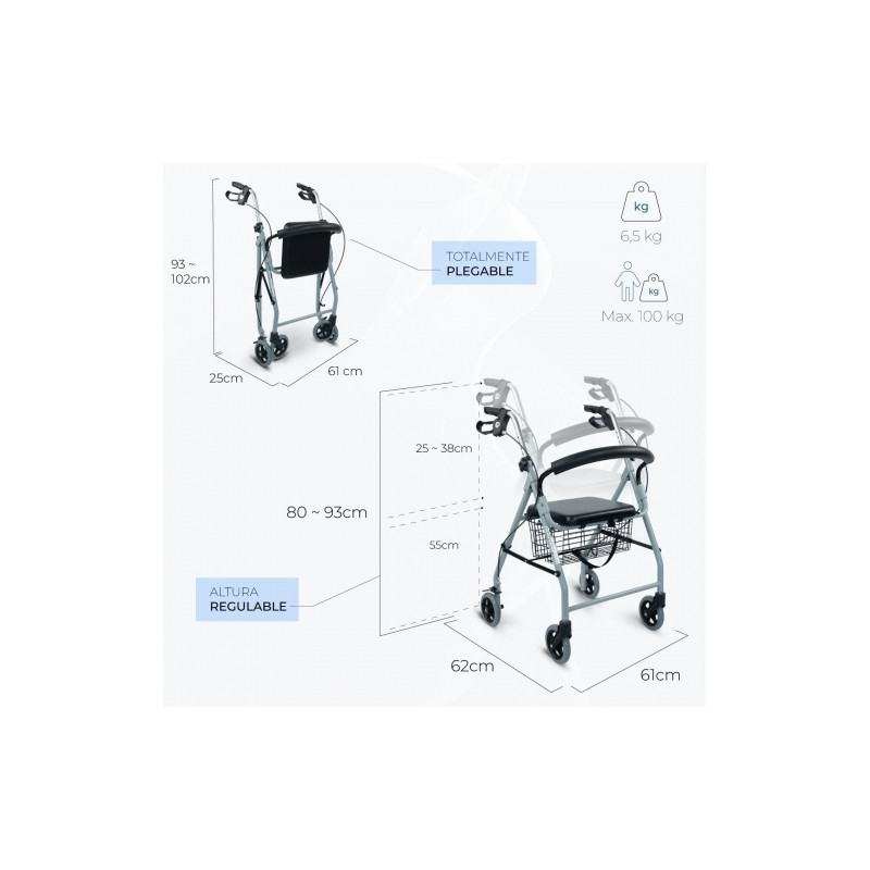 Características técnicas del andador plegable:
