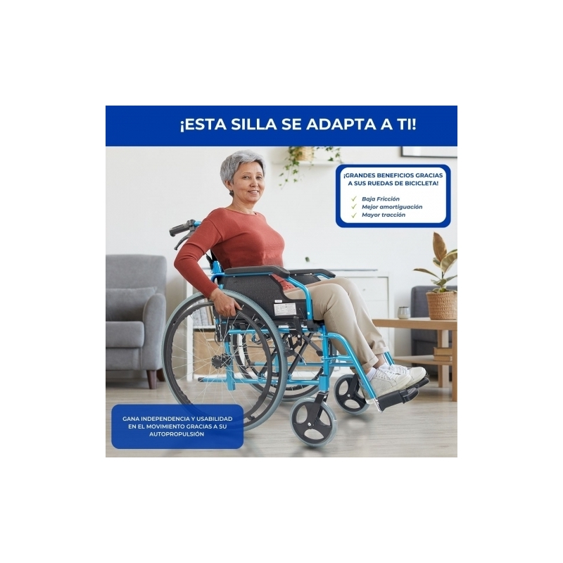 Es un modelo que presenta una gran autonomía gracias a sus ruedas, que minimizan el esfuerzo, y sus frenos manuales, que evitan posibles vuelcos. Y es que esta silla de ruedas ultraligera está creada para otorgar la máxima agilidad tanto en escenarios interiores como exteriores.