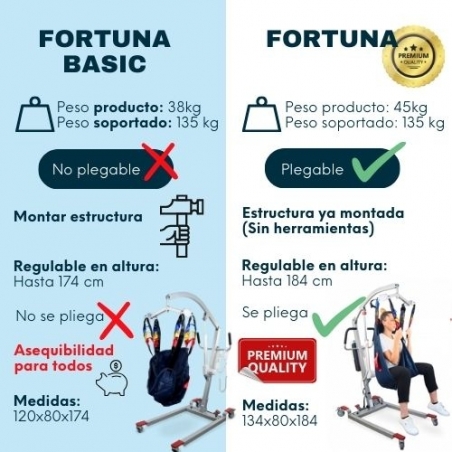 Grúa eléctrica | Incluye arnés 4 ganchos | Uso mientras se carga | Compacta | Máx. 180 kg | Fortuna Basic | Mobiclinic