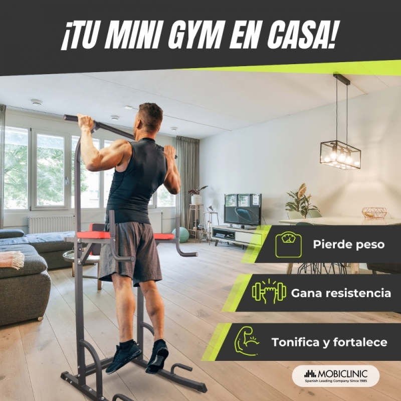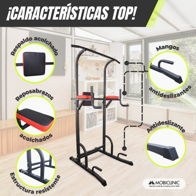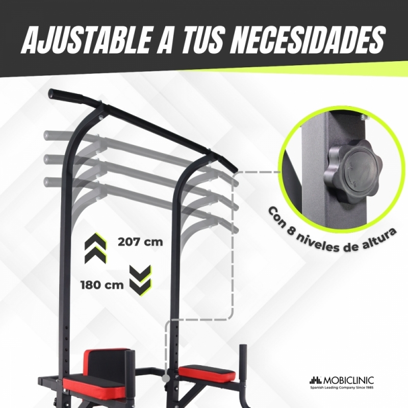 Estación de dominadas | Entrenamiento completo | Respaldo ajustable | Acolchado | Acero | Máx. 100kg | MultiFit | Mobiclinic