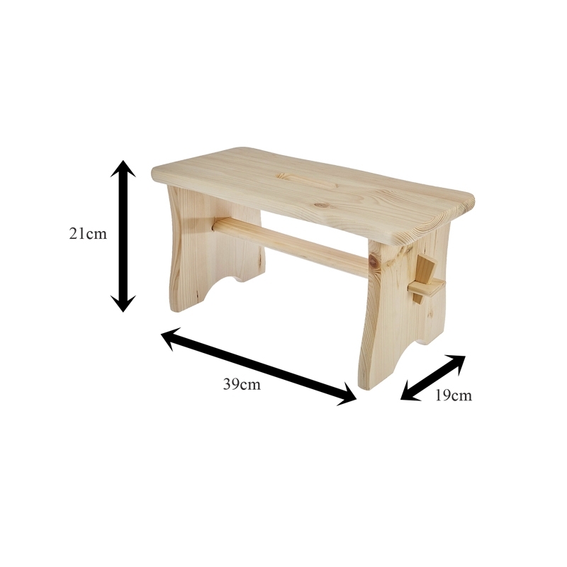 Escabel de un tramo madera de pino barnizado natural 39x21x19cm