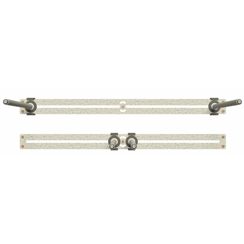 Soporte de colchonetas a pared. Tiene 2 ganchos deslizables mediante giro que permiten ajustarse para adaptarse a los ojales de las colchonetas. También se pueden usar para colgar elásticos, cuerdas, etc. Apto para el almacenamiento de hasta 20 colchonetas. Se atornilla a la pared a la altura deseada. Distancia entre agujeros de entre 5 y 65 cm.