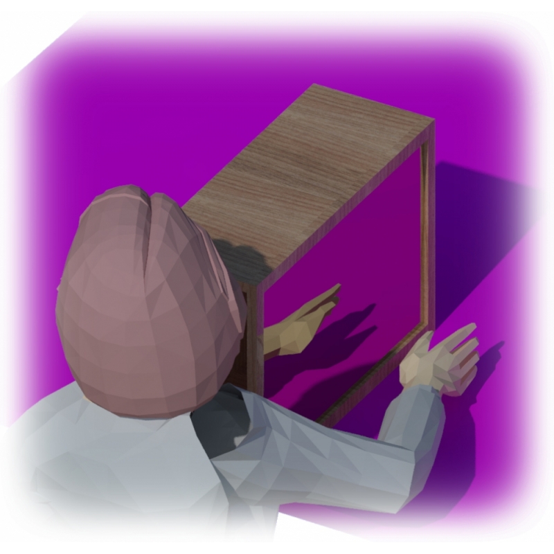 Cajón que oculta la extremidad superior del miembro amputado total o parcialmente y refleja el miembro sano. Utilizado para distintas terapias DMF (Dolor de Miembro Fantasma).