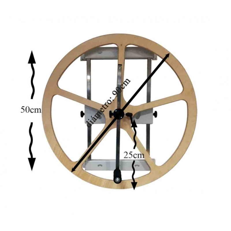El aro, los radios y la estrella central están fabricadas en una única pieza de madera, lo que le otorga una mayor estabilidad. Las guías son de acero y los accesorios en acero con acabado en epoxy.