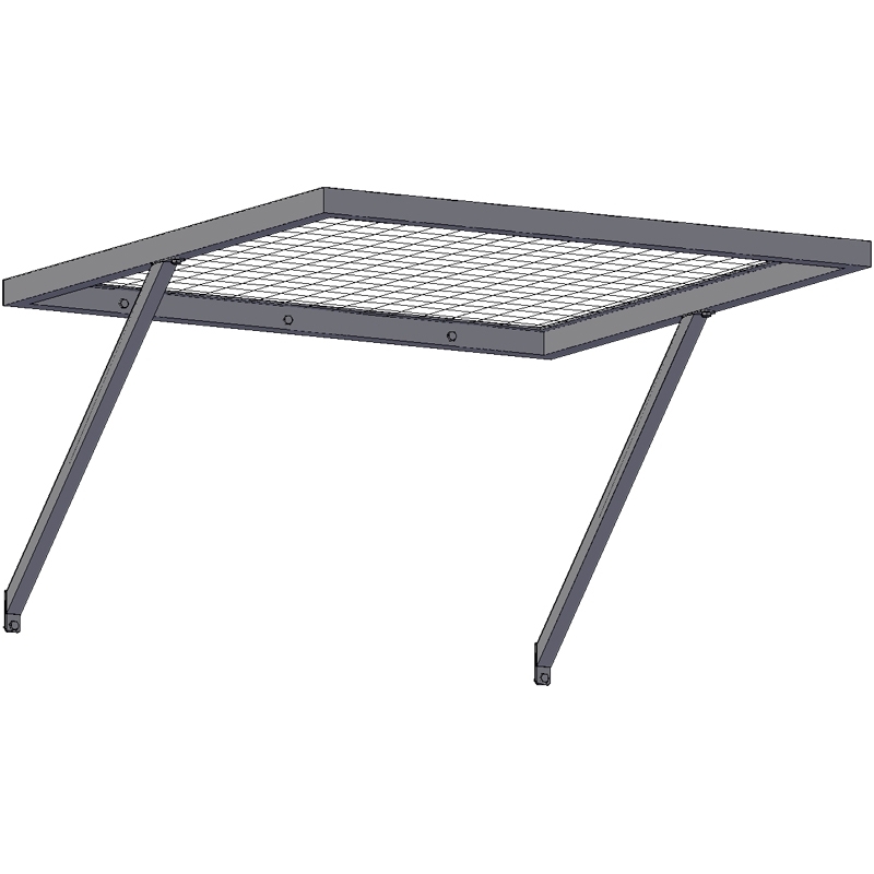 Panel en malla de acero ondulado con acabado en epoxy para anclar a pared mediante 2 tirantes.