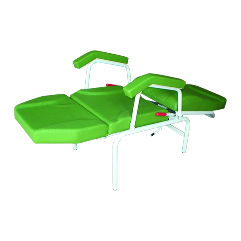 Respaldo y reposapiernas abatibles independientes `pr 2 cilindros hidroneumáticos de gas, actuados en 2 palancas bilaterales. Reposabrazos abatibles, gancho para bolsa orina. Apoyapies escamoteable bajo asiento de HPL blanco. 4 ruedas, dos con freno de 125mm, y 2 sin freno de 100mm. Tapizado con resistencia abrasión, transpiración, saliva, sangre, orina, luz UV, aceites y manchas. Protección antimicrobiana, antibacteriana y antimicótico. Ignífugo M2 y lavable. Impermeabilidad. Accesorios disponibles: Portasueros / Cojín reposacabezal.