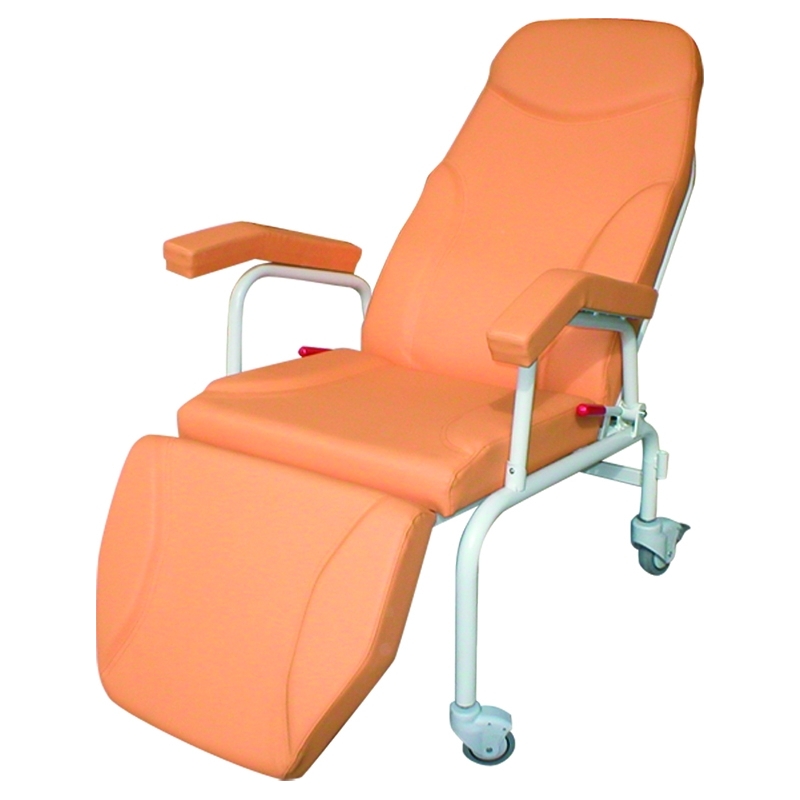 Para acomodar y trasladar a pacientes con enfermedad, lesión, discapacidad o deficiencia, ancianos, acompañantes y otros usuarios. Estructura de gran robustez, y durabilidad en acero pintado al horno en EPOXI-POLIESTER. Respaldo abatible por cilindro a gas sincronizado con reposapiernas abatible. Reposabrazos abatibles. Gancho para bolsa orina. Apoyapies escamoteable bajo asiento. 4 ruedas, 2 de 125mm con freno + 2 de 100mm sin freno. Asidero de empuje en respaldo, 2 acoples portasueros. Tapizado con resistencia a la abrasión, transpiración, saliva, sangre, orina, luz UV, aceites, manchas. Protección antimicrobiana, antibacteriana y antimicolítico. Ignífugo M2 y lavable. Impermeabilidad. Medidas totales sentado: 65cm ancho x 81cm largo x 113 cm alto