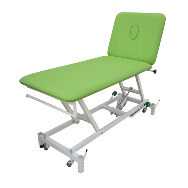 • Reclinable hasta 70º. Respaldo abatible por enclave con manetas de accionamiento a ambos lados de la camilla lo que permite al profesional una fácil adaptación a la terapia a realizar.