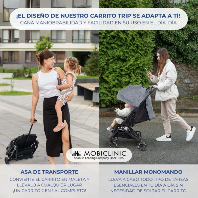 Silla paseo para bebé |Compacta |Plegable |Monomando |Para viajar |Reposapiés ajustable |Peso máx. 15kg |Gris |Trip | Mobiclinic