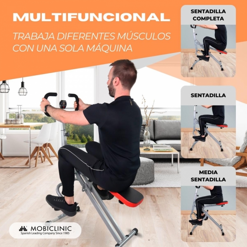 Este aparato total crunch es todo lo que necesitas para realizar un entrenamiento multifuncional sin moverte de casa. Mediante sus diferentes ajustes podrás ejercitar: