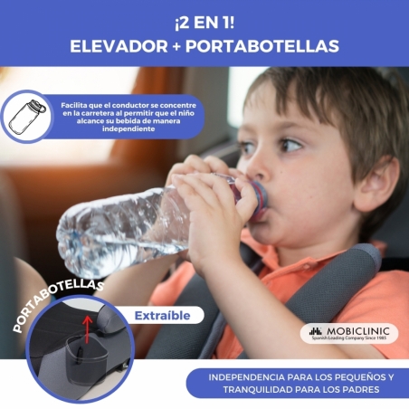INCLUYE PORTABOTELLAS: Este asiento elevador infantil para el coche cuenta con su propio portabotellas extraíble, ideal para que el niño tenga acceso a su botella libremente sin interrumpir la circulación del conductor y proporcionando independencia al mismo.