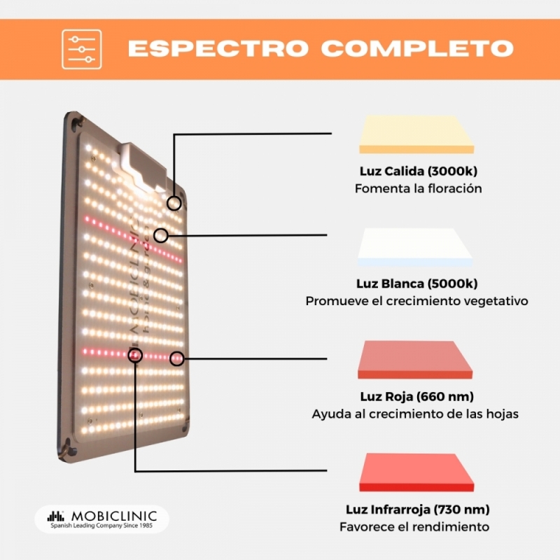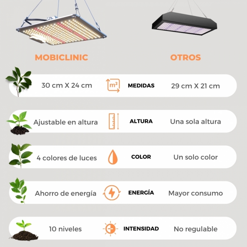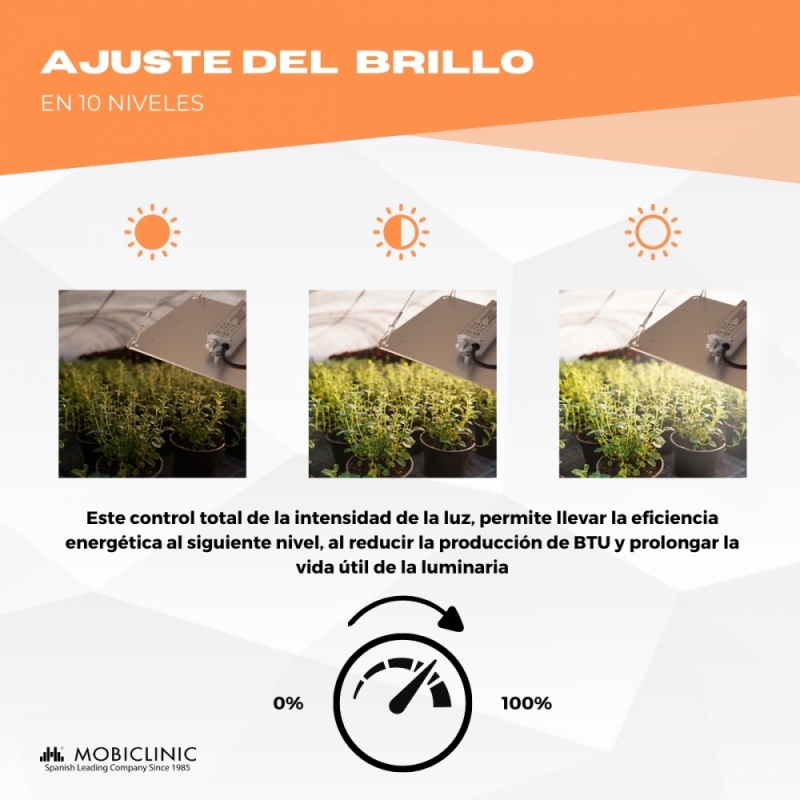 EFICIENCIA ENERGÉTICA: Esta luz para plantas incluye 10 niveles de brillo ajustables (10%,20%,30%, 40%,50%, 60%,70%, 80%,90% y 100%), lo que permite elegir el brillo más adecuado para tus plantas, ajustando individualmente la intensidad de la luz de espectro completo, 660nm luz roja + 730nm IR.and 460 luz bule. Este control total de la intensidad de la luz, permite llevar la eficiencia energética al siguiente nivel, al reducir la producción de BTU y prolongar la vida útil de la luminaria.