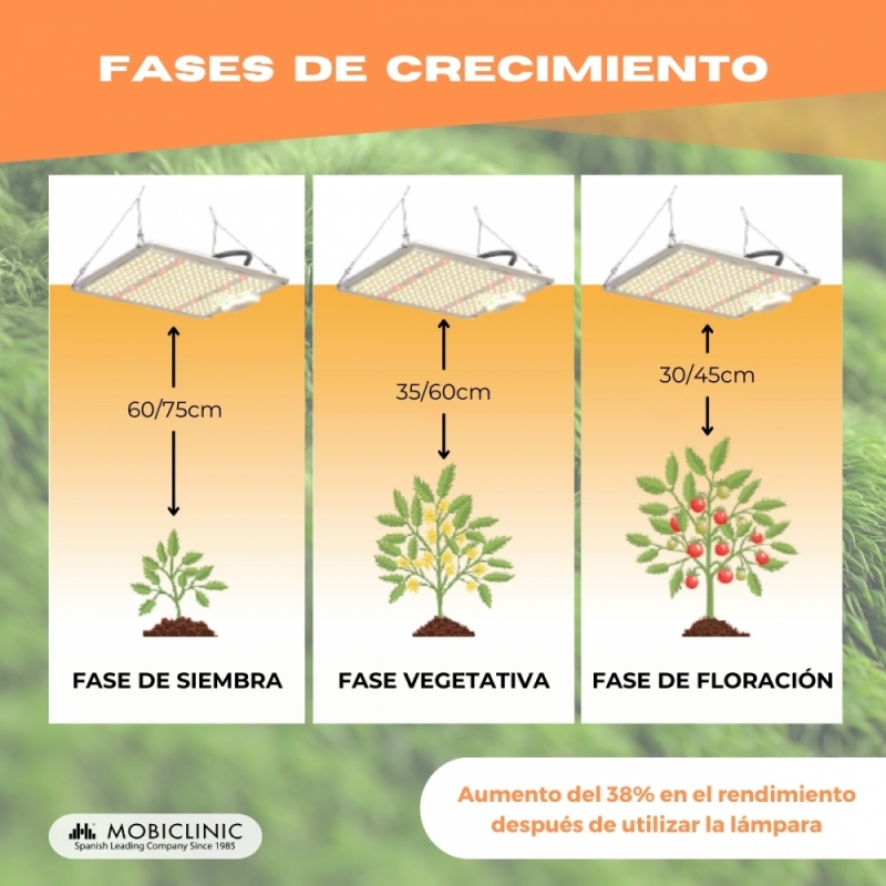 ACELERA LA MADURACIÓN: Gracias a su función de atenuación inteligente de la iluminación, nuestra innovadora luz de cultivo led Growlight, puede acelerar la maduración de tus plantas. Se adapta a las necesidades más específicas de cada planta, creando un entorno de crecimiento personalizado. Además, al contar con un índice de reproducción cromática de hasta el 95%, asegura una reproducción fiel de los colores y favorece un crecimiento saludable.