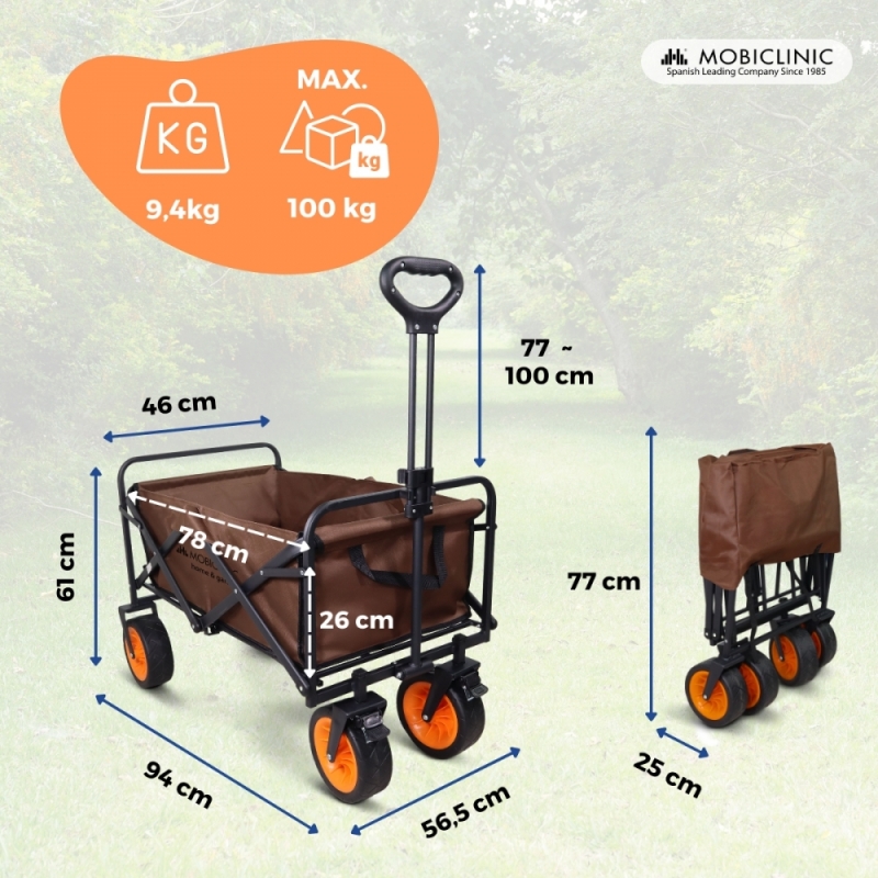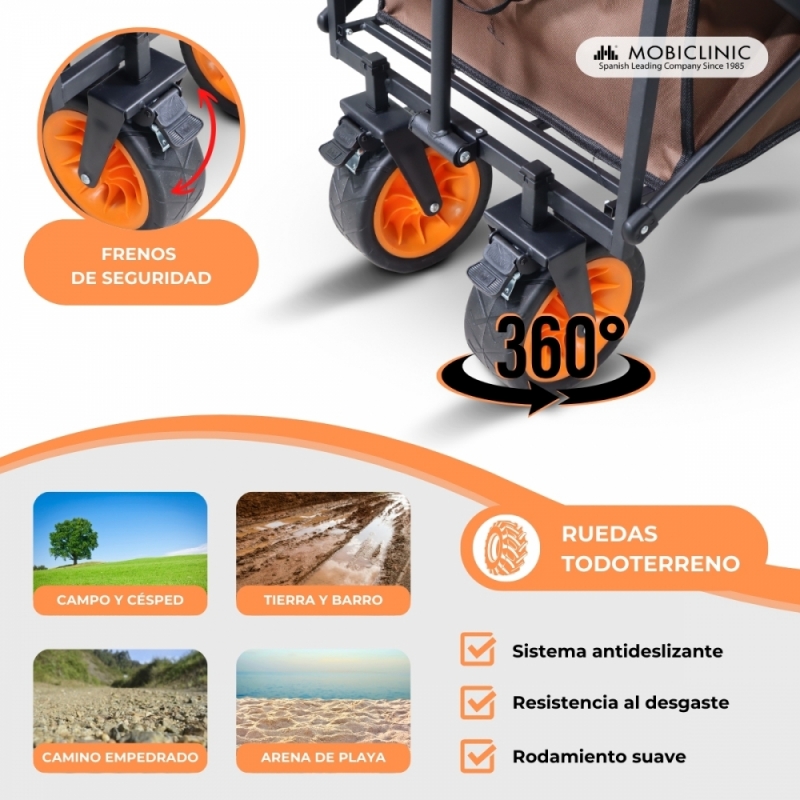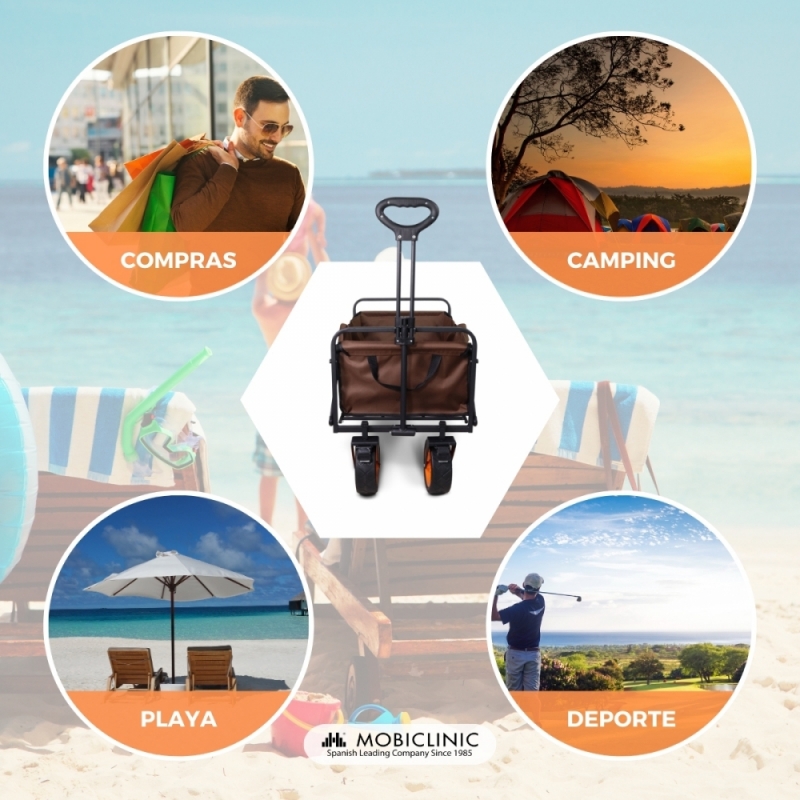 Carro transporte playa jardín | Asa ajustable |94x56,5x77cm | Plegable | Ruedas anchas 360º | Duna Pro Plus | Mobiclinic