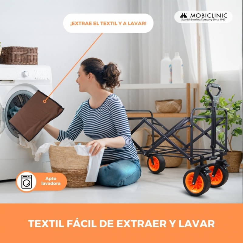 PLEGABLE Y PORTÁTIL: Su diseño plegable facilita su almacenamiento y transporte, lo que lo convierte en una opción perfecta para usar a diario y en cualquier parte. Cuando no está en uso, el carro de transporte se pliega de manera compacta, ocupando un espacio mínimo y siendo fácil de llevar a cualquier lugar. Además, si lo deseas, podrás extraer la parte textil.