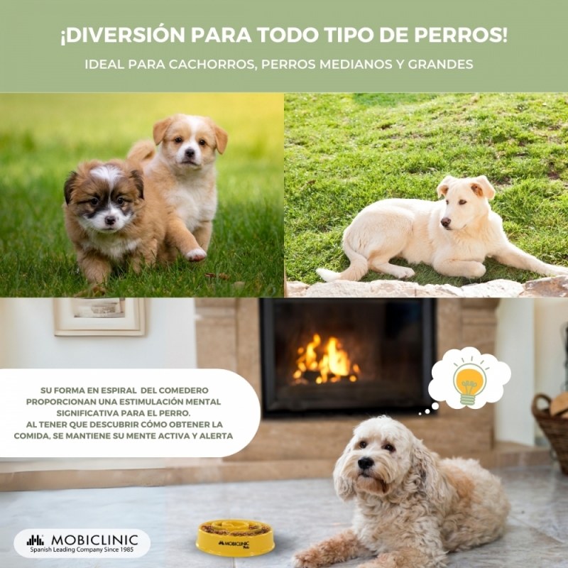 - Su estructura en espiral y base antideslizante aseguran una alimentación pausada y segura