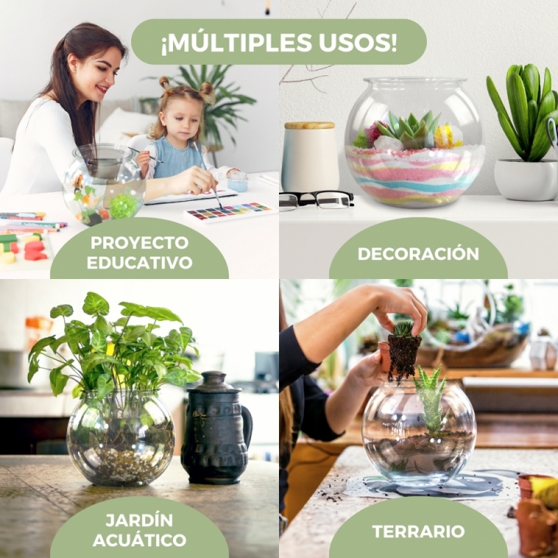 CONECTA CON LA NATURALEZA: La simplicidad de la pecera globo la convierte en una opción adecuada para personas que están empezando en el mundo de la acuariofilia. Además, puede ser una excelente herramienta para proyectos educativos sobre el ciclo del agua, cuidado de animales y ecosistemas acuáticos.