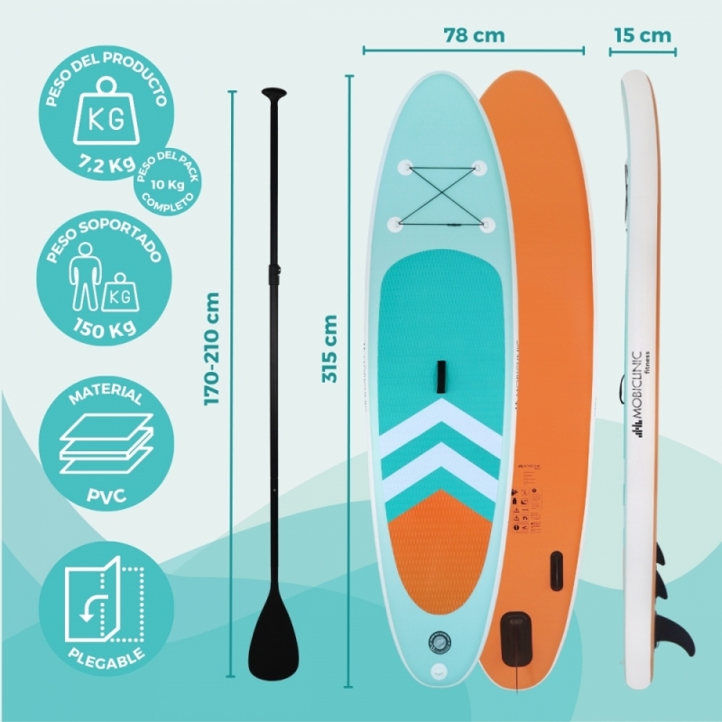 FÁCIL TRANSPORTE: Gracias a su mochila incluida, llevar tu tabla de paddle surf a cualquier lugar es fácil y sin complicaciones. Ligera y resistente, te permite explorar nuevos destinos acuáticos sin preocuparte por el transporte. Además una vez inflado, podrás transportarlo fácilmente con su asa de transporte.