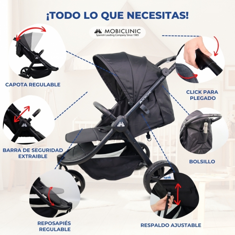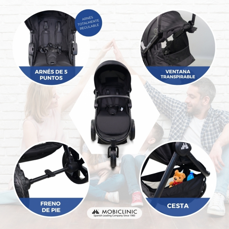 Silla de paseo con 3 ruedas |Ligera |Ruedas todoterreno |Arnés 5 puntos |Bolsillo trasero |Peso máx. 22kg |Agnes| Mobiclinic