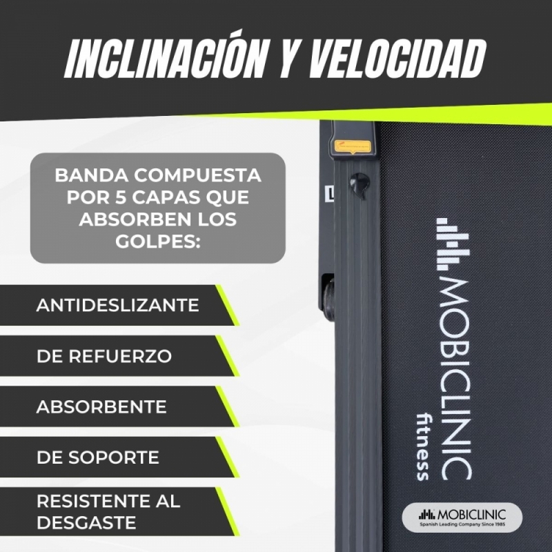 AMPLIA ÁREA DE FUNCIONAMIENTO: gracias a la amplia longitud de su superficie de 40 x 110 cm, contarás con espacio suficiente y seguro en la pisada tanto para andar como para correr. La cinta de correr Etna cuenta con 5 capas que refuerzan su superficie siendo esta antideslizante, absorbente, resistente al desgaste, protege las rodillas, etc.