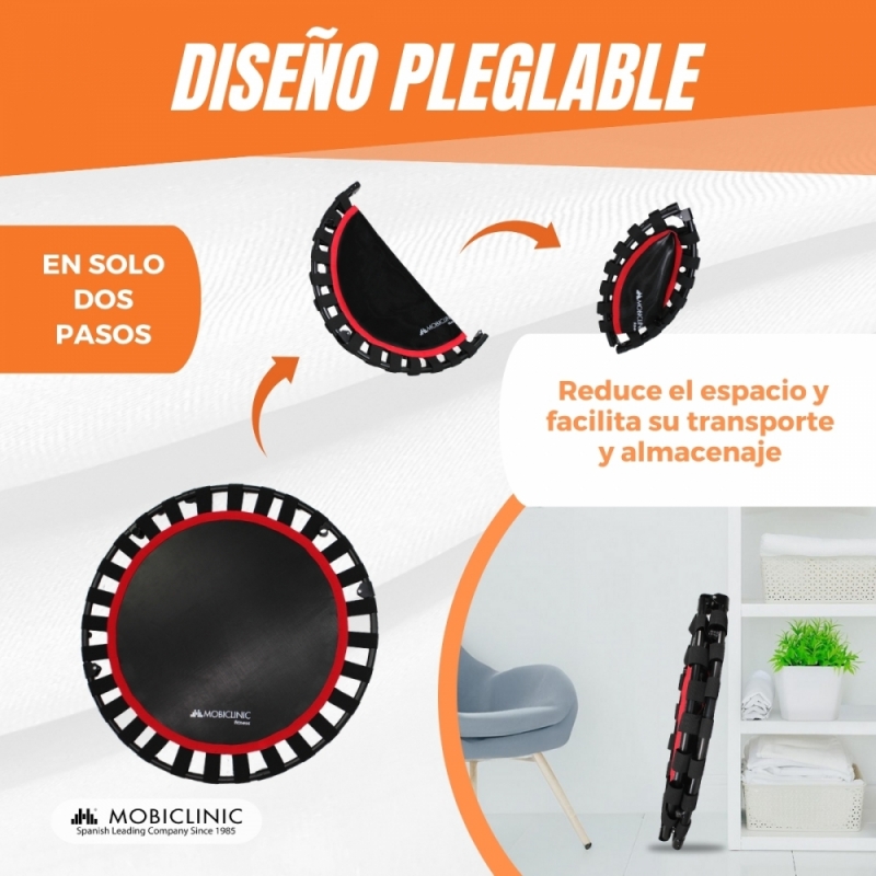 FÁCIL PLEGADO PARA ALMACENAMIENTO Y TRANSPORTE: El trampolín redondo Kangumobi se pliega de forma compacta ahorrando espacio gracias a su diseño. Tiene un montaje sencillo y rápido, usando sólo las herramientas que vienen con el producto.