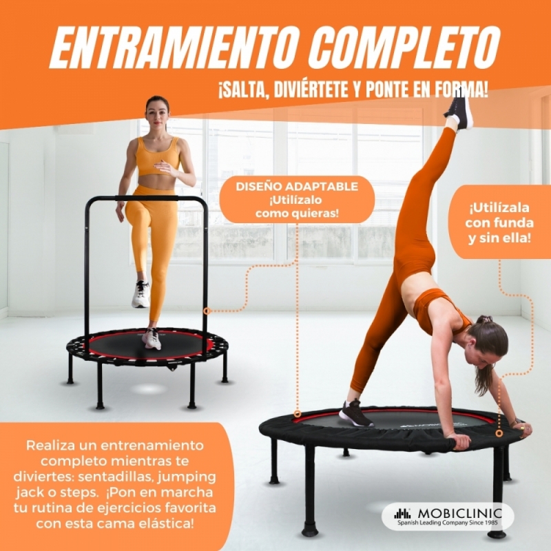 DIVIERTETE MIENTRAS TE EJERCITAS: El trampolín Kangumobi te ofrece una manera diferente de hacer ejercicio habiendo muchas opciones como el salto clásico, skipping, jumping jack, sentadilla y salto, etc. Es más, 10 minutos saltando equivalen a una quema de calorías de 1 hora trotando o 20 minutos nadando. ¡Salta, diviértete y ponte en forma!