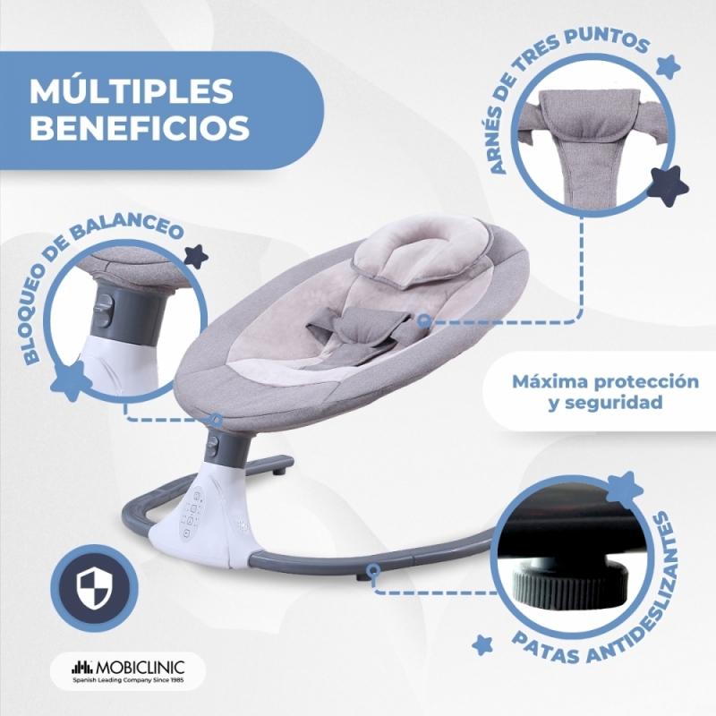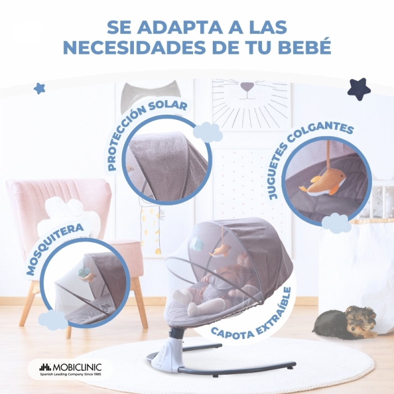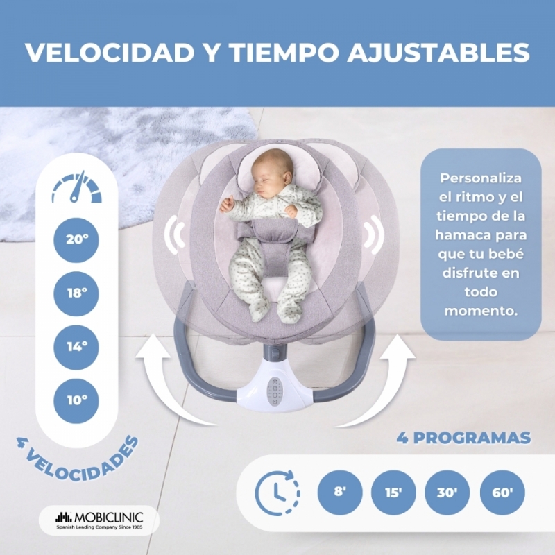 FUNCIÓN DE BALANCEO AJUSTABLE: Ofrece múltiples velocidades para adaptar el movimiento a las preferencias del bebé. Ideal para calmar y promover el sueño.