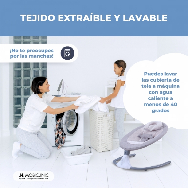 Fácil mantenimiento: Aunque la funda no es apta para lavavajillas, la hamaca es fácil de limpiar. La funda es desmontable, permitiendo su limpieza regular con un paño húmedo, lo que ayuda a mantener el producto higiénico y en buen estado.