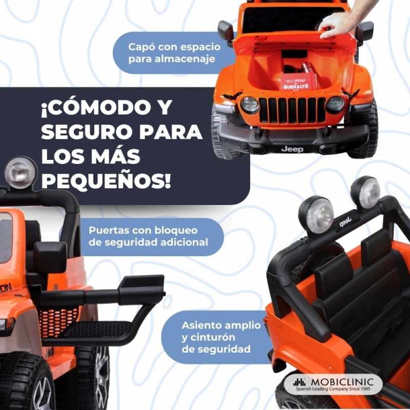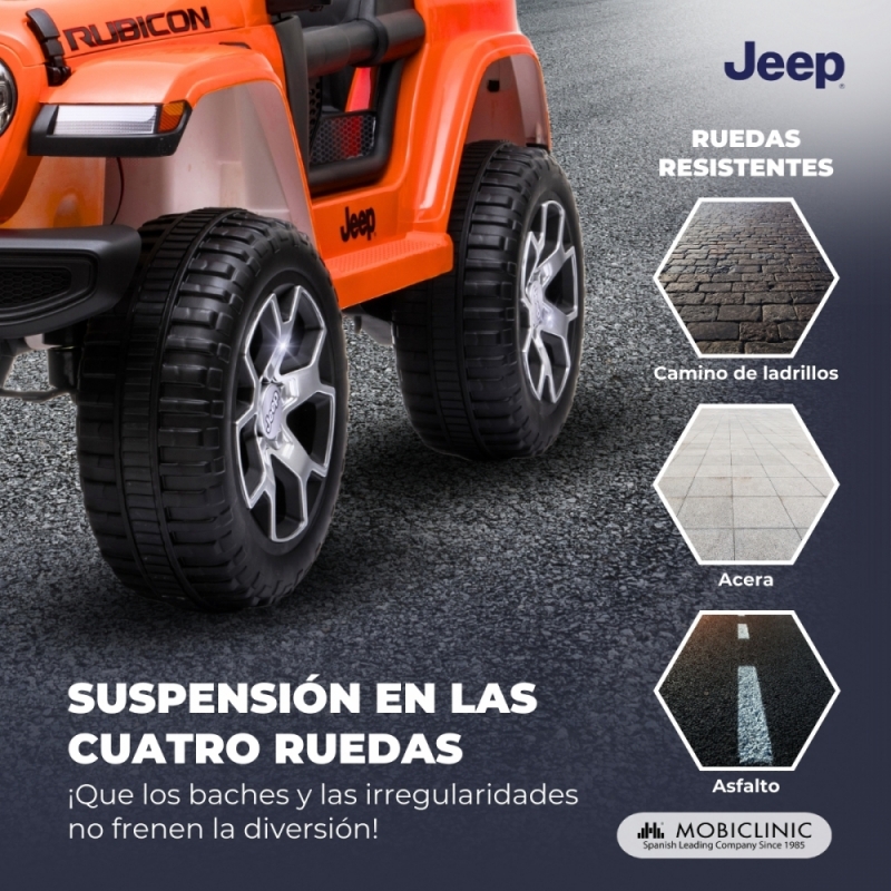 Coche Eléctrico | Jeep Wrangler | Pedal Eléctrico | Mando a Distancia | MP3, USB, SD, Radio | Luces LED | MobiRoad | Mobiclinic