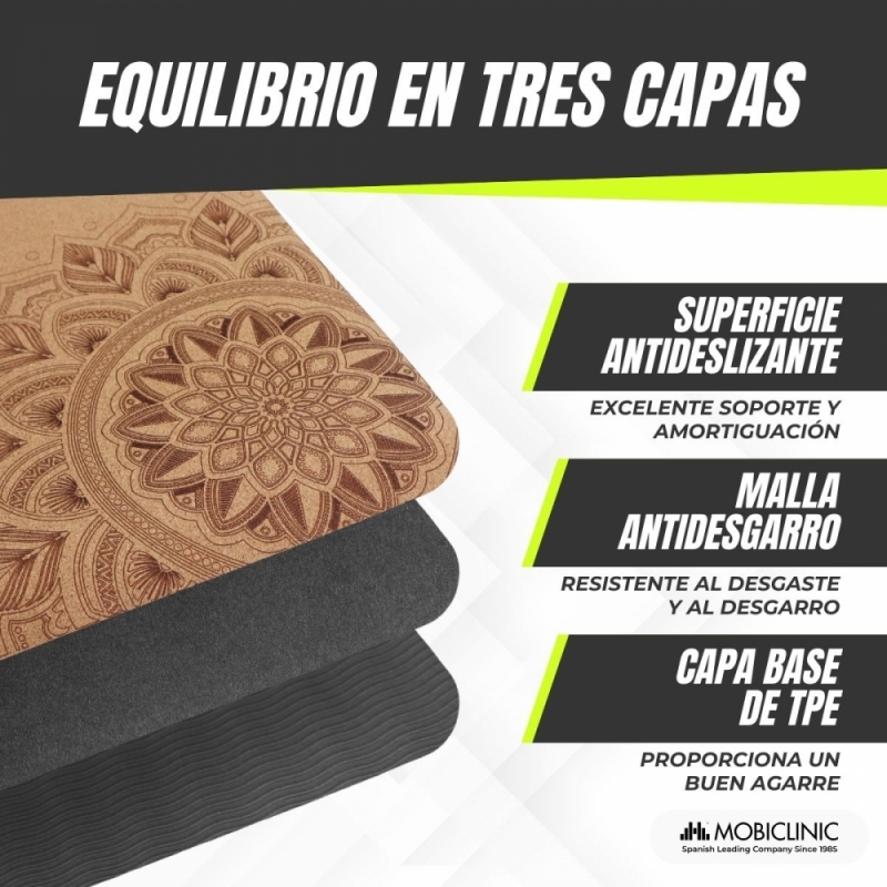 - Materiales: Corcho natural + TPE 100% reciclable