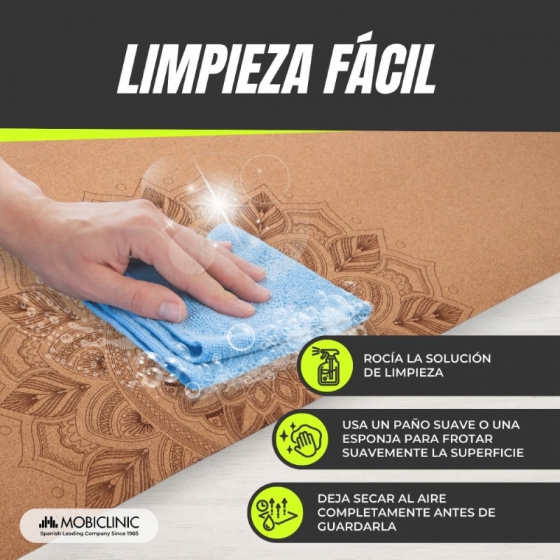 Para prolongar la vida útil de tu esterilla, evita limpiadores abrasivos y productos químicos fuertes. Limpia con una solución suave y un paño, y deja secar al aire. Para una limpieza profunda, usa agua tibia con jabón, enjuaga y déjala seca.