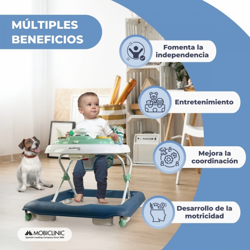FUNCIONALIDAD: Este caminador para bebé está diseñado para que los pequeños den sus primeros pasos de forma segura y entretenida. Gracias a su estructura que proporciona estabilidad y soporte, el bebé fortalecerá sus piernas y mejorará la coordinación mientras se desplaza. Su base garantiza un movimiento equilibrado, evitando vuelcos y brindando seguridad.