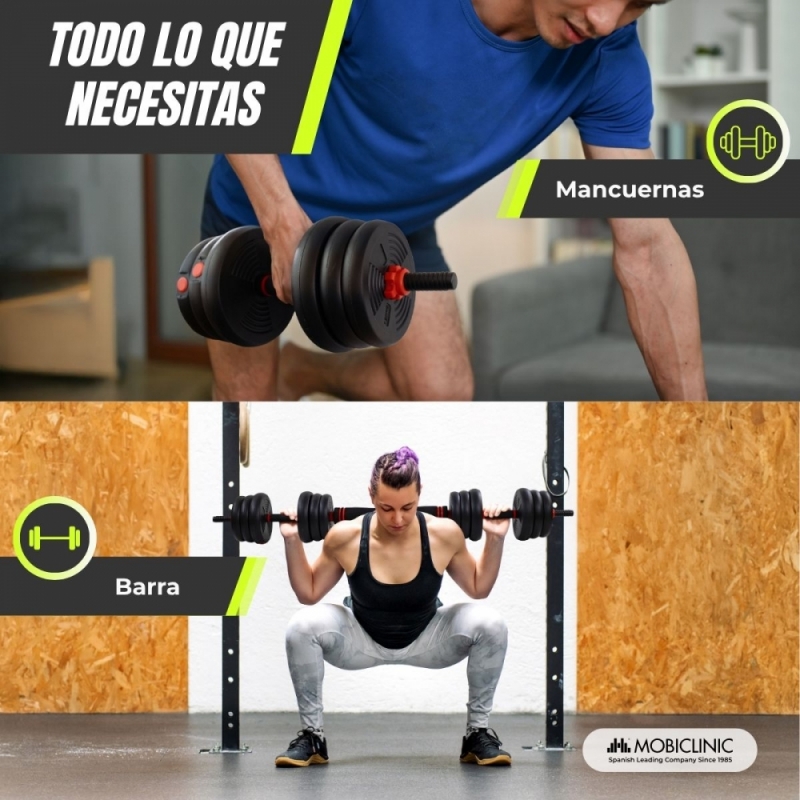 FÁCIL DE ALMACENAR: El juego de pesas Mobimax es perfecto para entrenar en casa, se desmonta fácilmente y podrás guardarlo en cualquier espacio. Gracias a su diseño portátil podrás entrenar en cualquier momento y lugar. ¡Entrena donde quieras, cuando quieras!