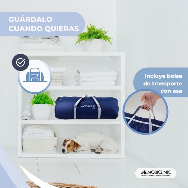 TRASPORTABLE: Este parque infantil de juegos se monta y desmonta de manera fácil e intuitiva, permitiendo su traslado entre habitaciones o diferentes espacios, gracias a su bolsa de transporte. Está fabricado con poliéster, hierro y polipropileno respetuoso con el medioambiente y seguros para el bebé