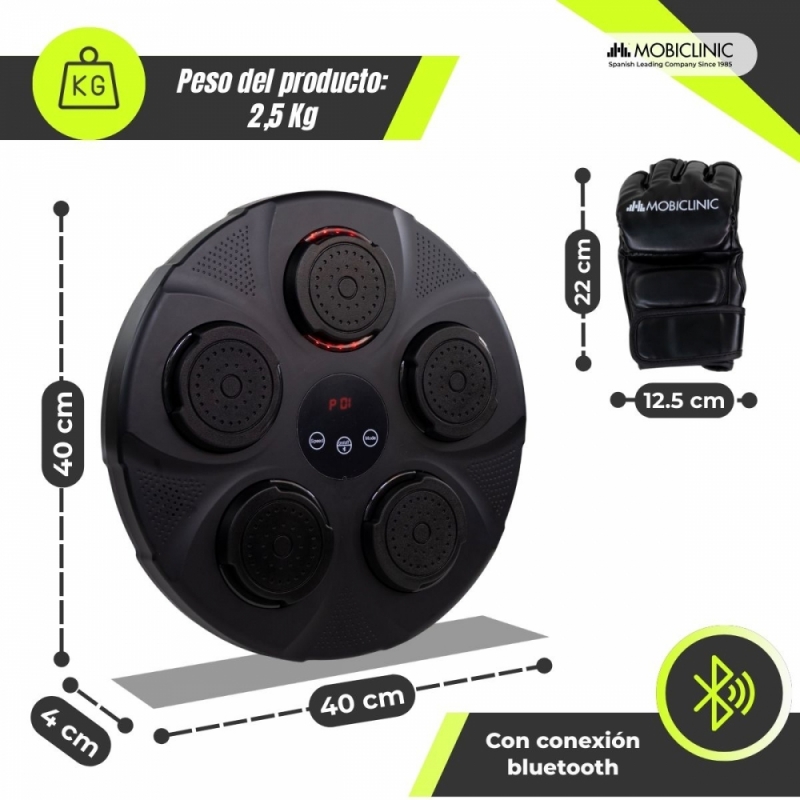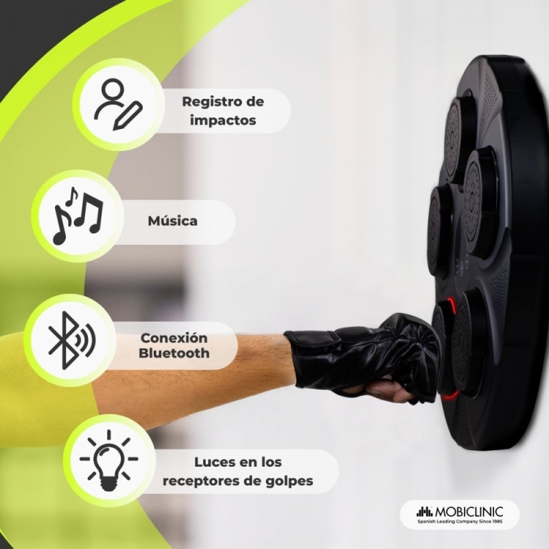 CARACTERÍSTICAS CLAVE: Esta máquina de boxeo ofrece una experiencia completa. Incluye guantes de boxeo y luces rojas en los receptores de golpes, y además mide y muestra en su pantalla digital el número de golpes para que puedas seguir tu proceso. Tiene una carga de 3-4 horas y podrás disfrutar de un entrenamiento de 4 horas sin interrupciones.