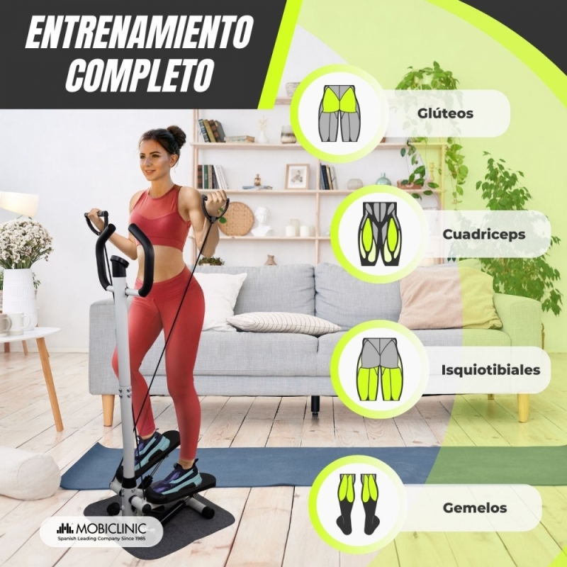 ENTRENAMIENTO EN CASA: Esta máquina de steps con brazos permite trabajar el cuerpo completo, ofreciendo un ejercicio integral. Combina cardio y tonificación muscular, fortaleciendo piernas, glúteos, brazos y mejora la resistencia. Perfecto para quienes buscan entrenar en casa