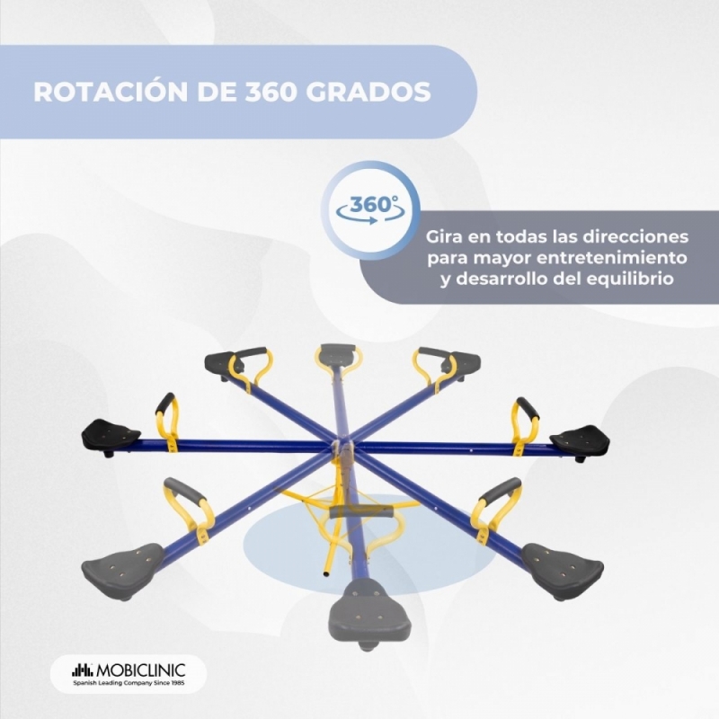 GIRO 360º: El balancín Mobifun está diseñado para ofrecer una experiencia de juego perfecta gracias a su capacidad de giro 360º. Permitiendo a los niños balancearse hacia cualquier dirección, lo que favorece el desarrollo el equilibrio y la coordinación desde pequeños.