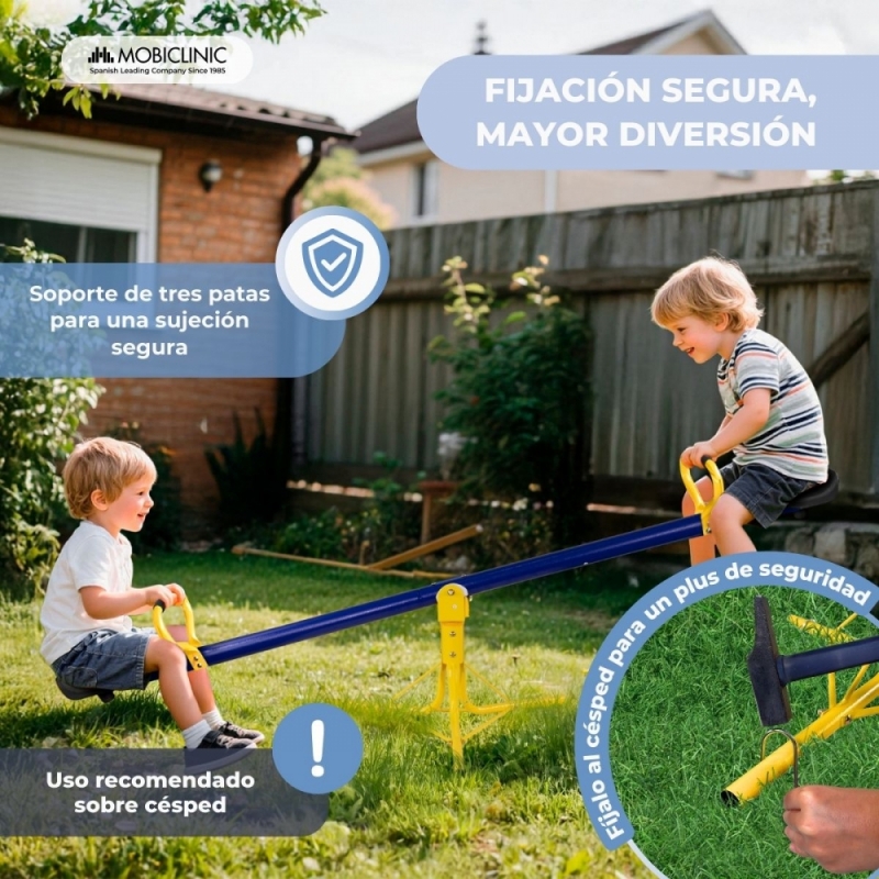SEGURIDAD GARANTIZADA: Cuenta con un gancho de conexión a tierra que hace que el balancín se mantenga firme y estable durante su uso. Este refuerzo ofrece un extra de seguridad aportando tranquilidad y un entorno seguro de juego, para que los más pequeños disfruten de un juego seguro.