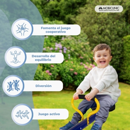 El balancín Mobifun está diseñado para que jueguen simultáneamente dos niños, favoreciendo la interacción, cooperación y el desarrollo de las habilidad sociales desde que son pequeños. Sus asientos son cómodos y ergonómicos y proporcionan una postura adecuada durante el juego.
