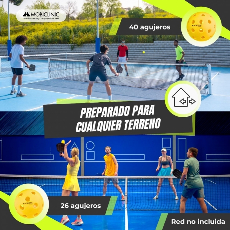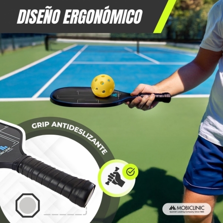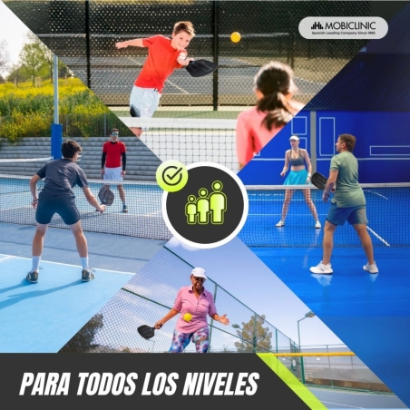 El set de Pickleball Mobiall es una opción perfecta tanto para jugadores principiantes como para exportes que buscan una actividad física completa y divertida. Incluye 4 raquetas fabricadas con fibra de vidrio y núcleo interior de panal de polímero, material que ofrece combinación de control y potencia durante el juego. Sus empuñaduras ergonómicas con grip antideslizante y absorbente aseguran una sujeción cómoda.