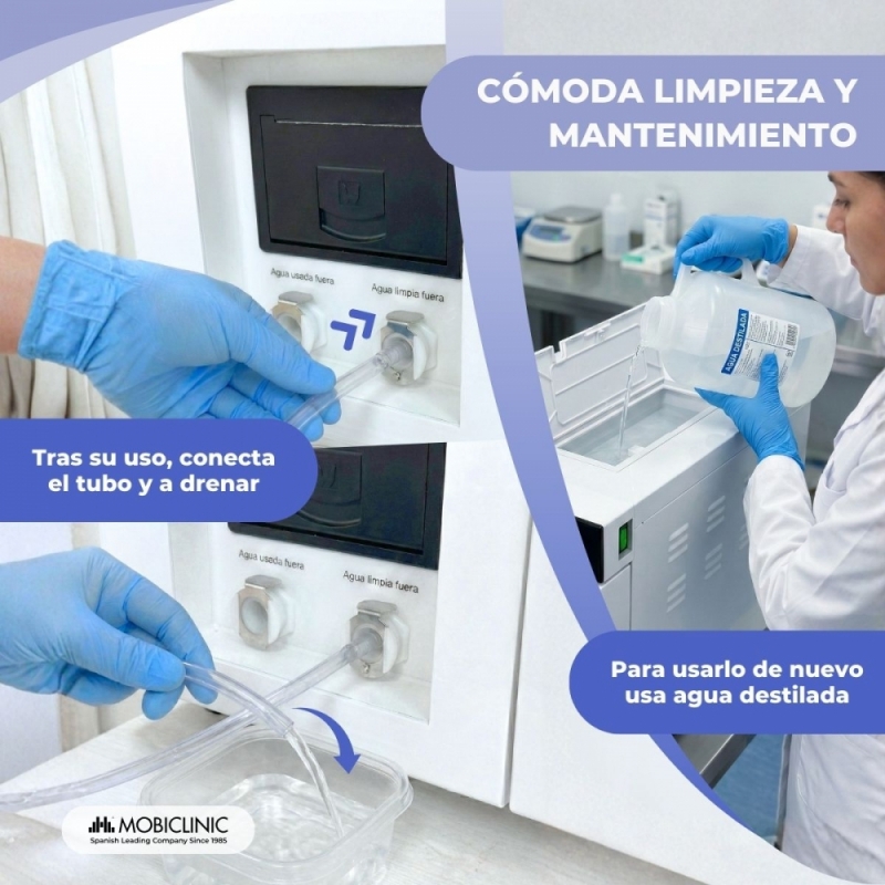El autoclave esterilizador Mobiclinic de 17 litros está diseñado para ofrecer una esterilización completa, profesional y segura, adaptándose a las exigencias de múltiples sectores como clínicas dentales, centros médicos, laboratorios, ortopedias o veterinarios.