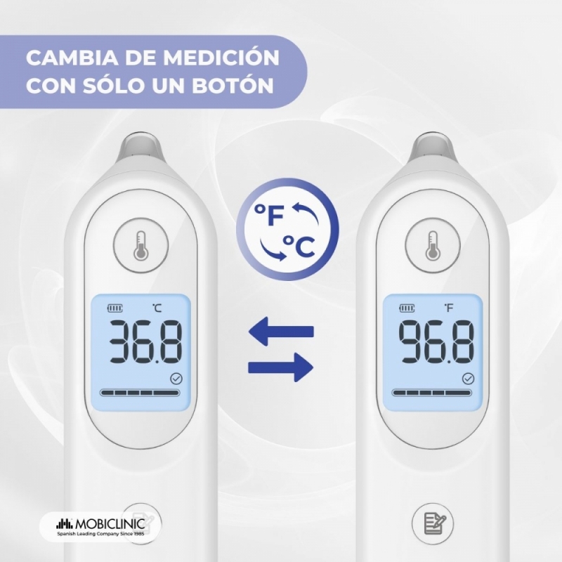 PANTALLA RETROILUMINADA Y DOBLE UNIDAD: Dispone de una pantalla que facilita la lectura incluso en habitaciones con poca luz o durante la noche. Además, ofrece la posibilidad de medir la temperatura tanto en ºC como en ºF, adaptándose a las preferencias de los usuarios