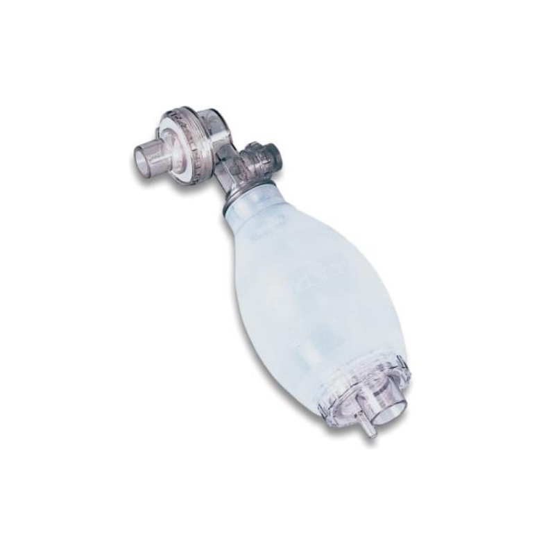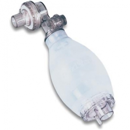 Contiene válvula de alivio de presión para minimizar el riesgo de sobrepresión pulmonar, que puede ser bloqueada si se requiere una mayor presión de inspiración. Volúmen 1700 ml.