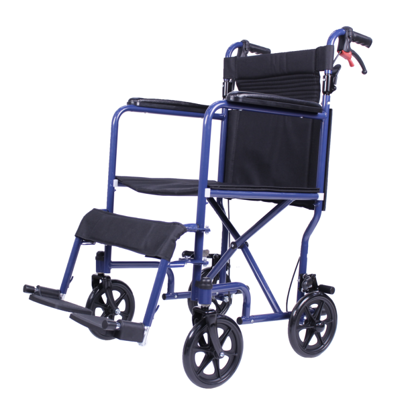 LIGERA Y PLEGABLE: Esta silla de tránsito es plegable lo que permite almacenarla en espacios pequeños y transportarla con facilidad en coche o viajes. Su diseño además es muy ligero, lo que reduce el esfuerzo del cuidador al empujarla o moverla. Además, cuenta con reposabrazos acolchados y respaldo abatible facilitando más el transporte y aportando mayor comodidad al usuario.