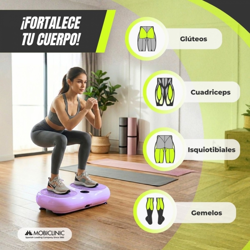 Plataforma vibratoria | 99 niveles de velocidad | 9 programas | Bandas elásticas | Pantalla y mando | Karol | Mobiclinic