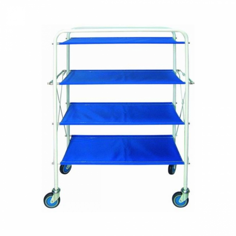 Carro plegable de hierro, pintado epoxi, color blanco, 4 bandejas