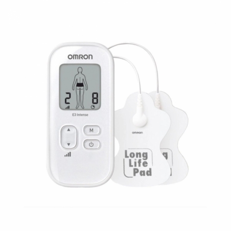OMRON E3 Intense es un aparato diseñado para aliviar el dolor sin necesidad de medicamentos. Incluye 6 programas ya configurados para tratar zonas como la espalda, los hombros, las articulaciones y los músculos. Funciona mediante tecnología TENS (estimulación nerviosa eléctrica transcutánea).