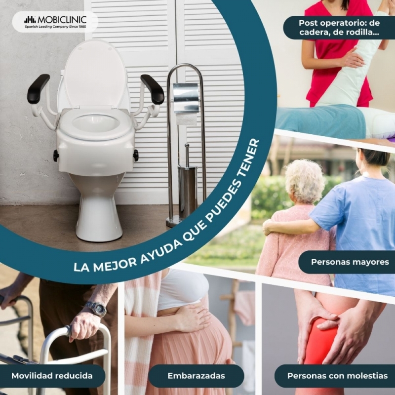 Las bajas alturas de los inodoros pueden crear sufrimiento y esfuerzos innecesarios en las rodillas y cintura de las personas con discapacidad física, movilidad reducida y en los mayores. Esto puede causar caídas y dificultades mayores en el día a día de estas personas. Por eso, es muy recomendable tener un elevador inodoro en casa que mejore la calidad de vida de sus usuarios y cuidadores. Soporta un máximo de 100 kg.