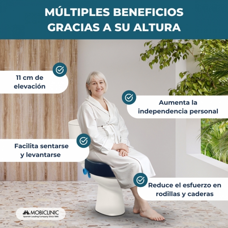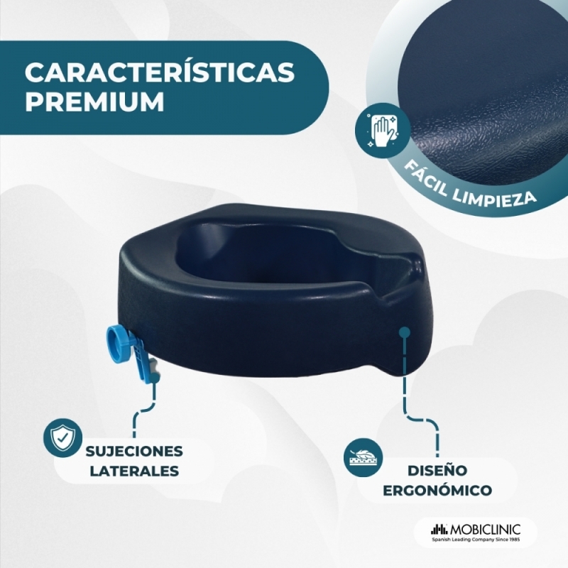CONFORT Y DESCANSO: la forma del elevador inodoro reduce la presión y aporta un mayor confort gracias a su material blando de cuero de Poliuretano que se adapta al usuario.