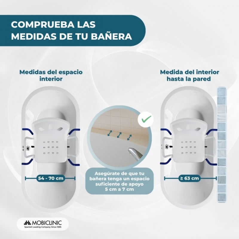 ADAPTABLE: la silla para bañera se adapta perfectamente. No hay necesidad de modificar el cuarto de baño, ella se adapta a ti.